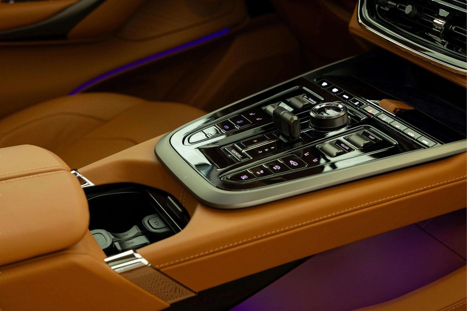 - Floor console storage Covered floor console storage